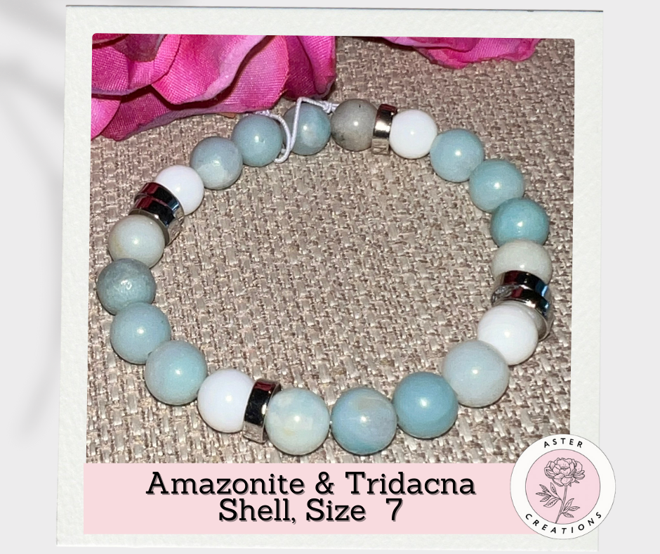 Amazonite & Tridacna Shell Bracelet, Size 7
