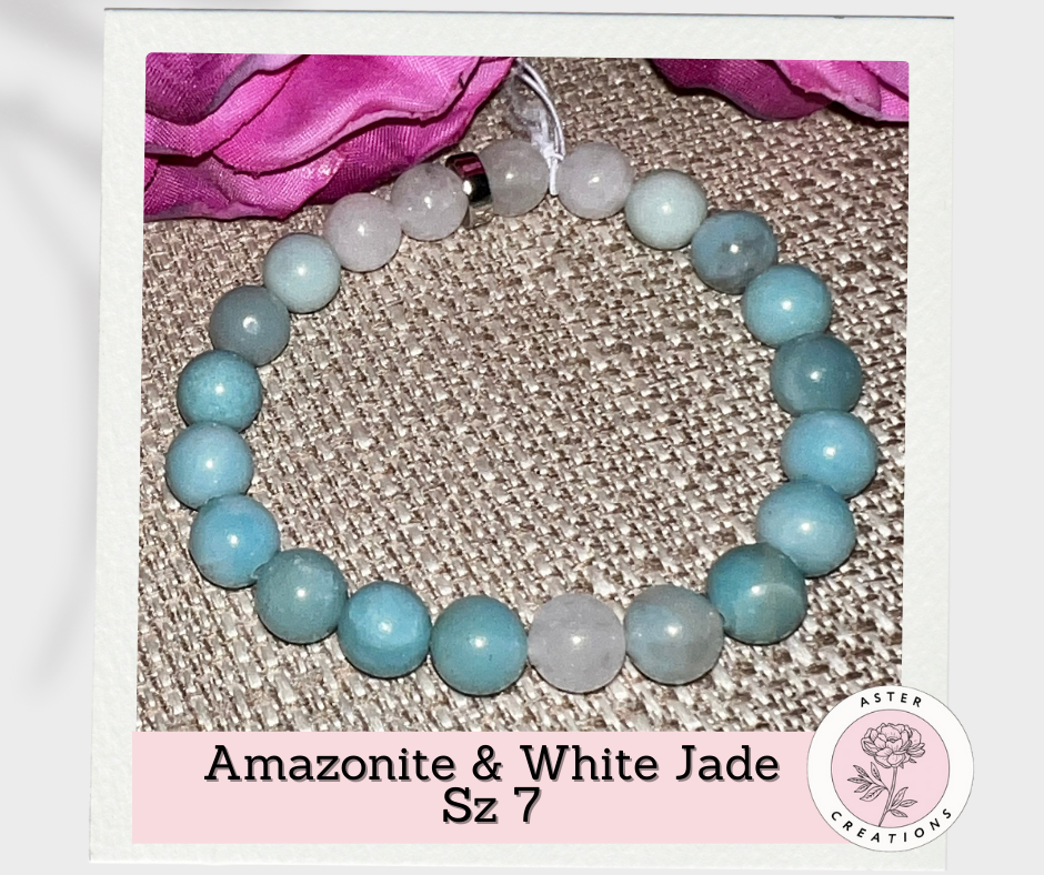 Amazonite & White Jade Bracelet, Size 7