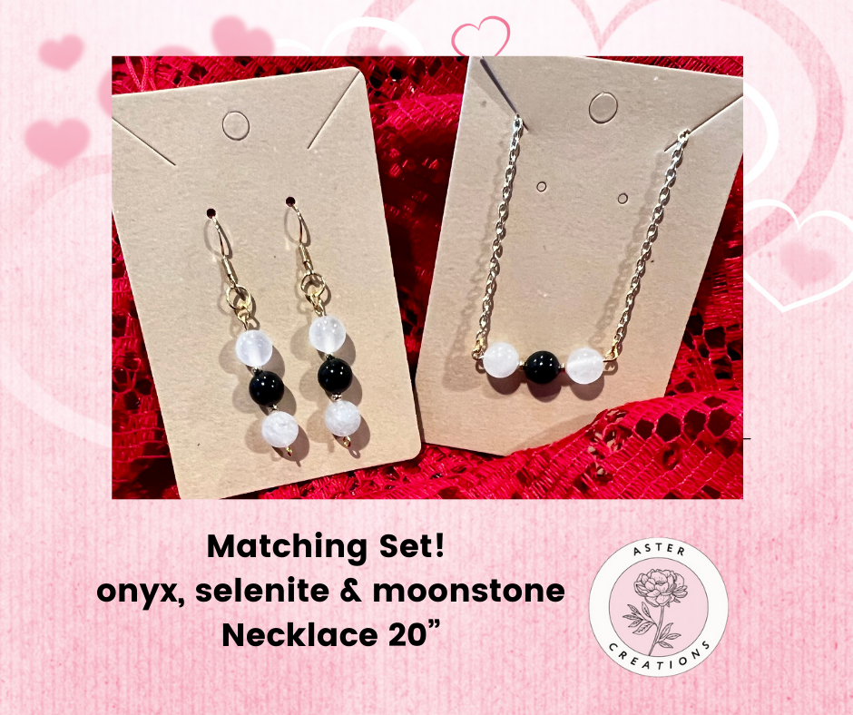 Look stunning in this captivating set comprised of Onyx, Selenite & Moonstone!