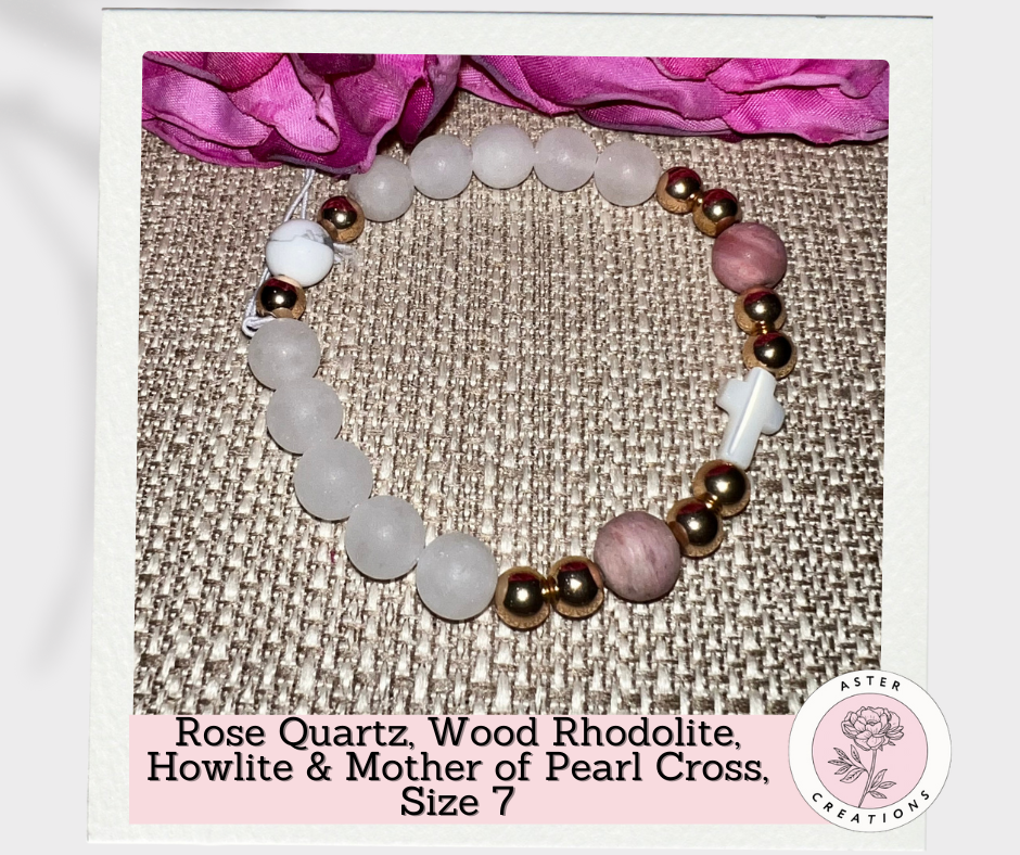 Made with Rose Quartz, Wood Rhodolite and Howlite