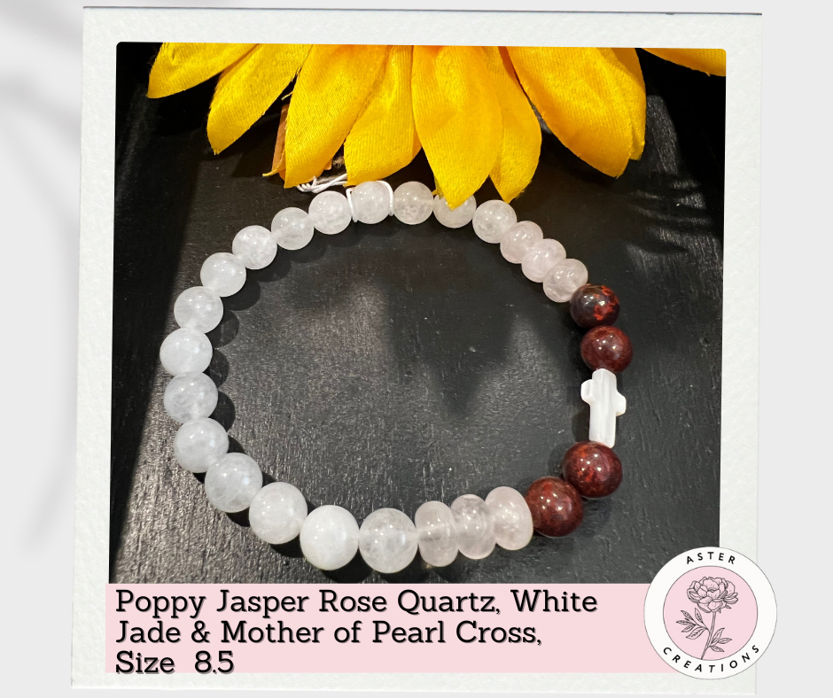 Made with Poppy Jasper, Rose Quartz & White Jade