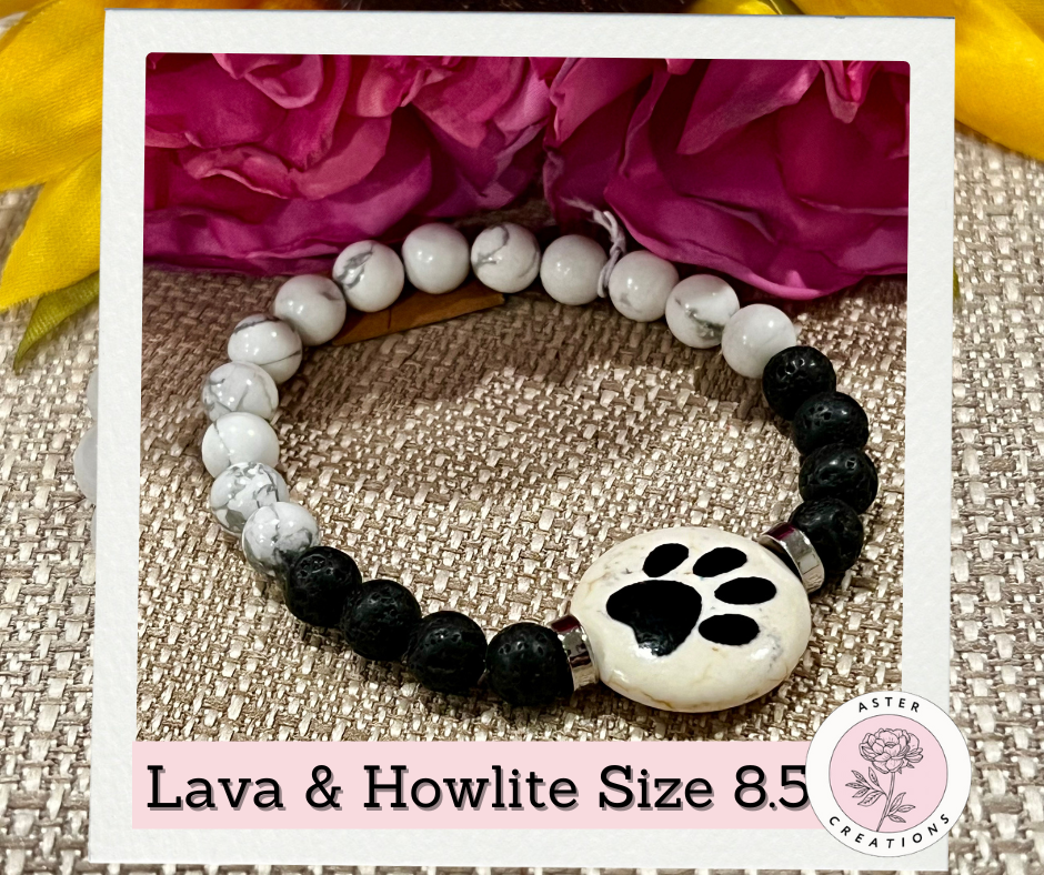 Paw Bracelet made with Lava Stone and Howlite.