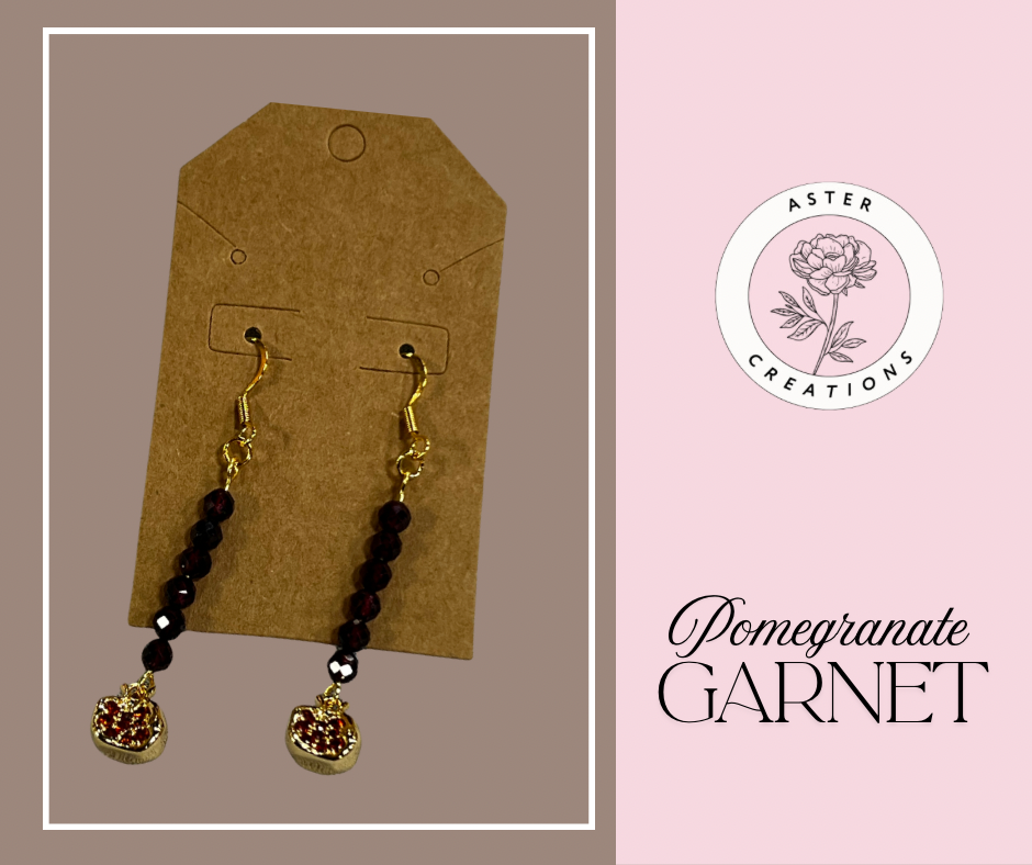 Garnet gemstone adorns this beautiful pair of earrings! Pomegranate accent is the icing on the cake!