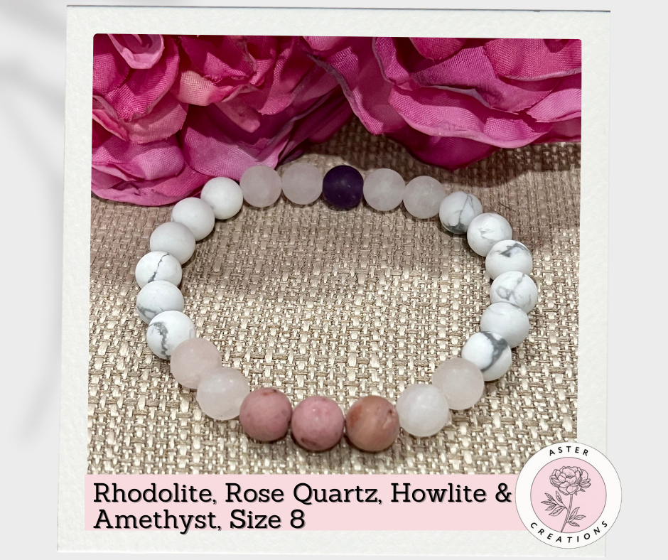 Rhodolite, Howlite & Rose Quartz Bracelet, Size 8