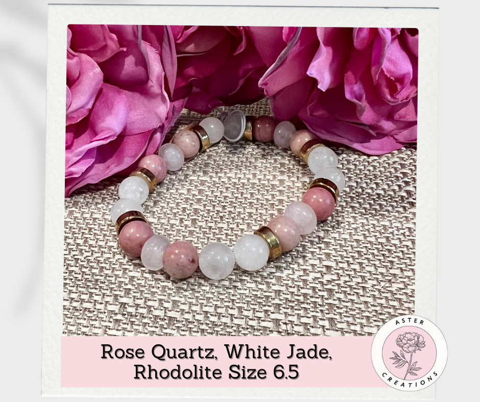 Rose Quartz, White Jade & Rhodolite Size 6.5