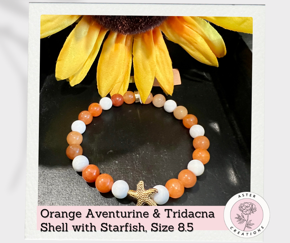 Starfish Charm Bracelet with Orange Aventurine & Tridacna Shell Beads