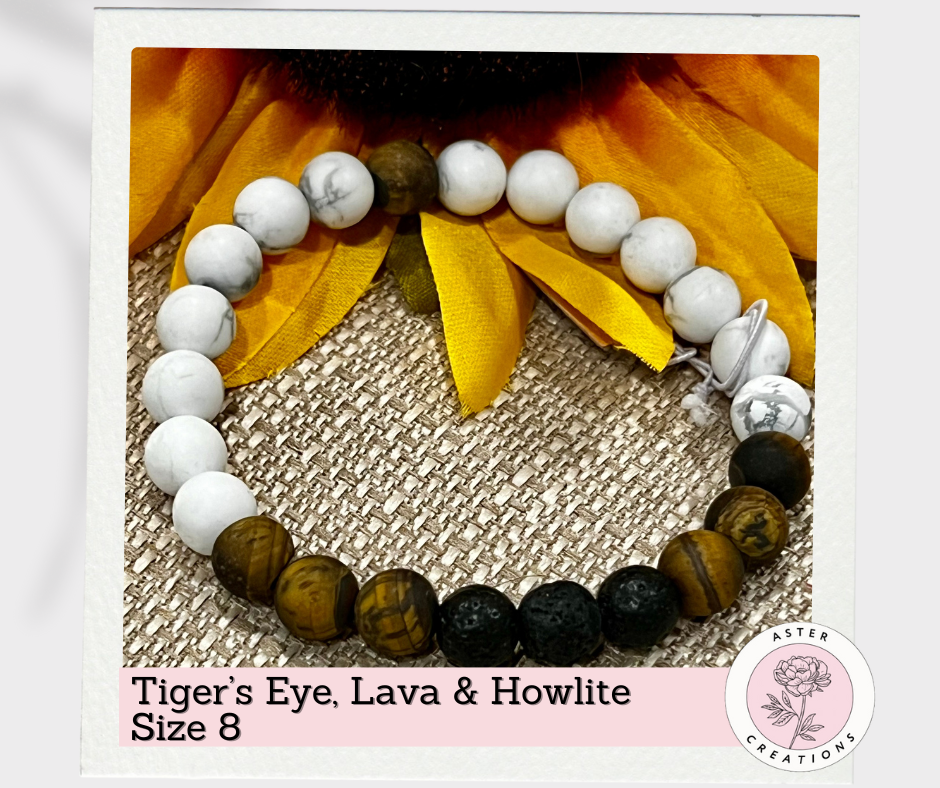Tiger's Eye, Lava & Howlite Bracelet, Size 8